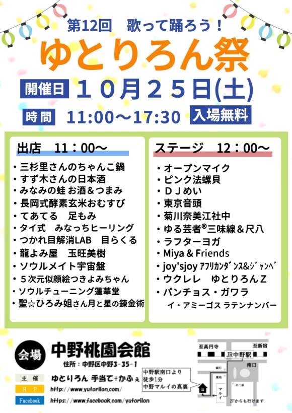 10月25日土曜日 ゆとりろん祭開催いたします♡