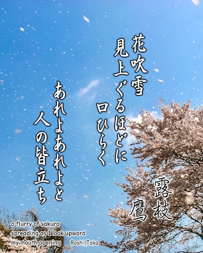 花吹雪 見上ぐるほどに 口ひらく