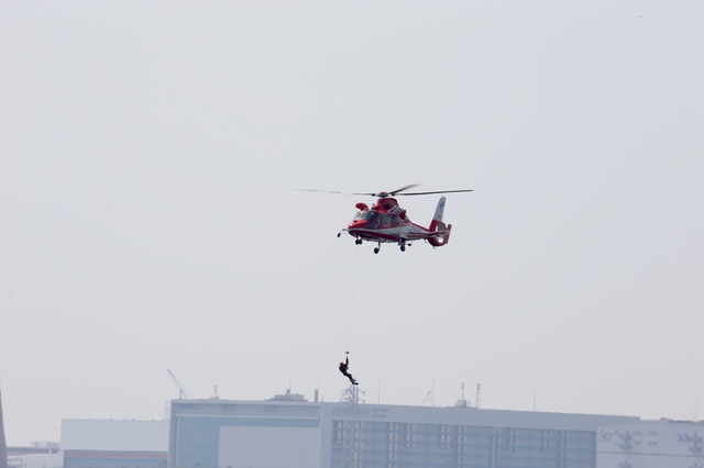 写真は 災害救助中のヘリコプターです