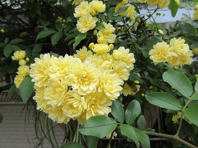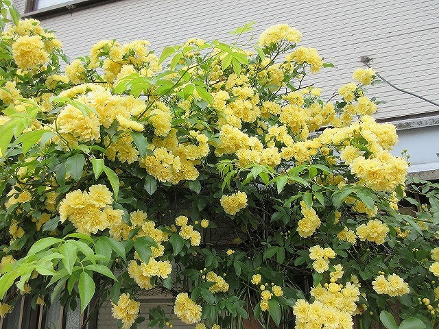 こちらでも あちこちでモッコウバラ見かけます。