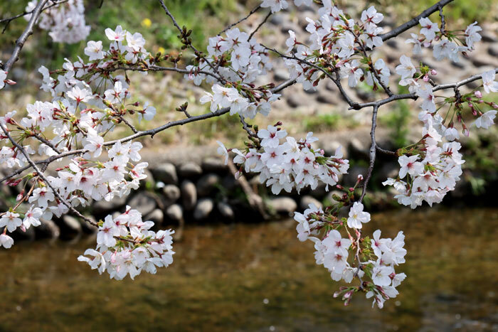 昨日、買い物前に川沿いの桜並木を歩いて