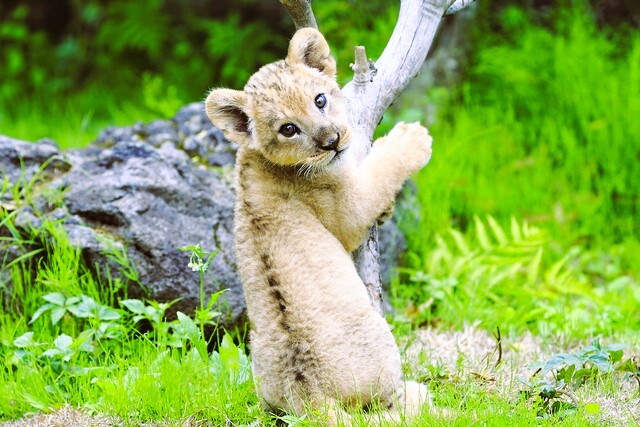 写真は獅子(ライオン)と将来のライオンキングです