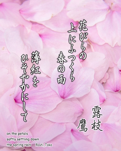 花びらの 上にふつくら 春の雨