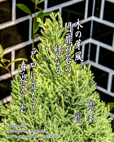 木の芽風 門扉の苔の 緑なる